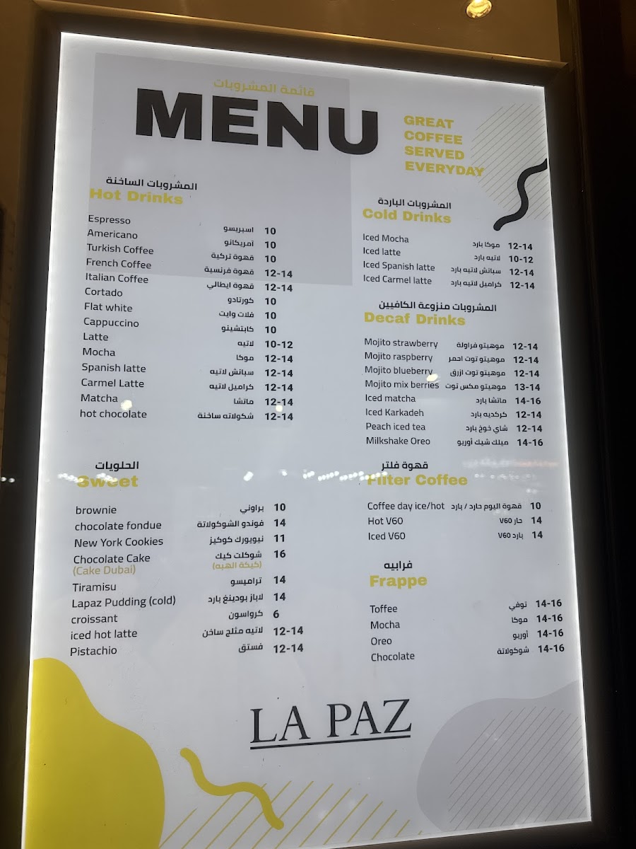 Welcome to La Paz Cafe لاباز كوفي, a delightful haven located on King Fahd Rd in Riyadh. This charming cafe has earned rave reviews from patrons who admire not only the exceptional coffee but also the warm service provided by staff member Nadim, who has received numerous accolades for his hospitality.